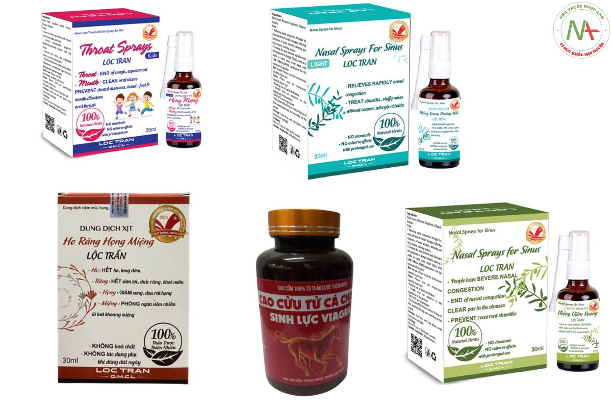 - Thiết bị y tế: Dung Dịch Xịt Ho Răng Họng Miệng Lộc Trần, Dung dịch xịt mũi Lộc Trần, Dung dịch xịt viêm mũi họng miệng trẻ em Lộc Trần 30ml,…