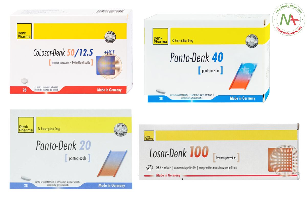 Những sản phẩm tiêu biểu của Denk Pharma đang được lưu hành như Colosar-Denk 50/12.5, Panto-Denk 40, Panto-Denk 20, Losar-Denk 100,…