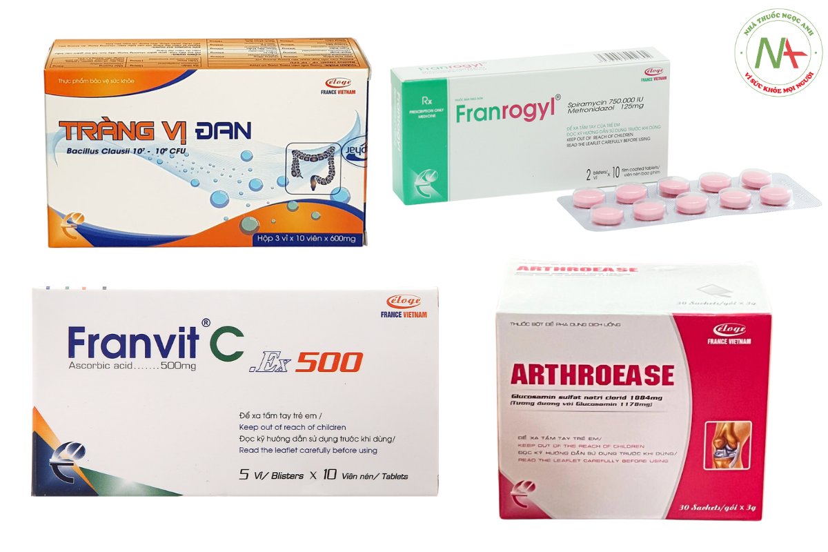 Sản phẩm của Éloge France Việt Nam đều được nhận nhiều phản hồi tích cực. Có những dòng sản phẩm nổi bật như Franrogyl, Tràng Vị Đan Éloge, Franvit C Ex 500, Arthroease 1500mg,…