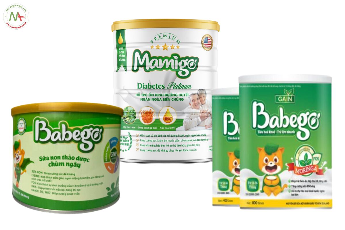 - Sữa thảo dược chùm ngây Babego: Với công nghệ “Nano bao phim” giúp bé hấp thu tốt, hỗ trợ tăng cân khoa học. Thành phần chứa OPO, FOS, Lactobacillus cân bằng hệ tiêu hóa, giảm táo bón, sữa non nhập khẩu từ Hoa Kỳ giúp tăng đề kháng, DHA và 18 axit amin hỗ trợ trí não. Lysine, Kẽm giúp bé ăn ngon cũng Canxi cá tuyết, Vitamin D3, K2 hỗ trợ tăng chiều cao hiệu quả.