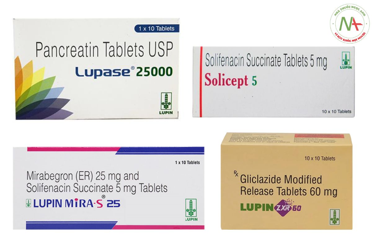 Một số sản phẩm tiêu biểu do Lupin Limited sản xuất như Lupase 25000, Lupin Mira-S 25, Solicept 5, Maschio,…