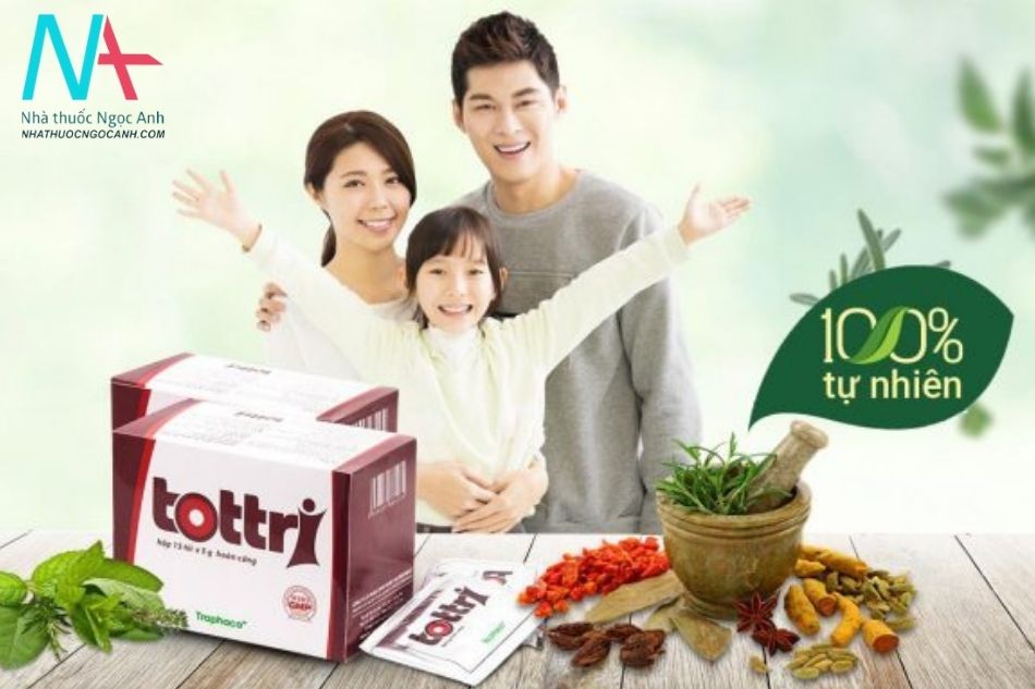 Công dụng: tottri chứa các thành phần thảo dược có tác dụng bổ máu, tăng lưu thông tuần hoàn, điều trị nguyên nhân gây trĩ từ bên trong cơ thể. Không những vậy, thuốc còn giúp giảm cảm giác đau, ngứa châm chích vùng hậu môn, làm mềm phân, hạn chế tình trạng chảy máu sau mỗi lần đại tiện.